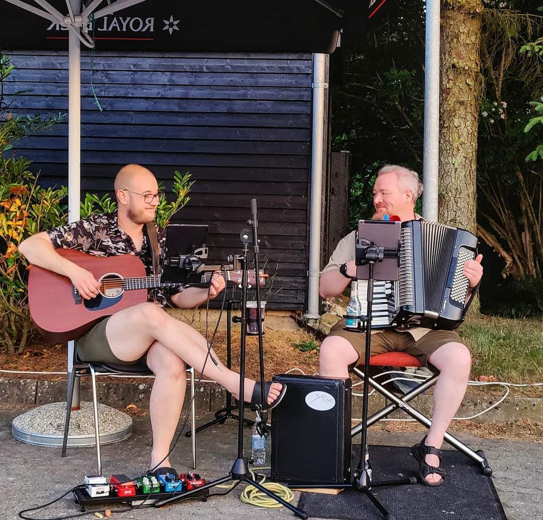 To glade spillemænd fra Ulbjerg, med egne fortolkninger af populære sange fra nær og fjern.